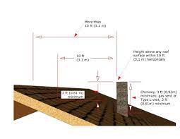 When a chimney is not adequately supported by ties or securely restrained in any way its height H when measured from the highest point of intersection with the roof surface gutter and so on should not exceed 45W provided the density of the masonry is greater than 1500 kgm 3 that is. This is a bit of an odd measurement and chimney clearance case because the chimney side is actually about 8 away from the roof edge. Height Bends and Smoke Termination.