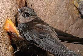 A bird best identified by silhouette the smudge-gray Chimney Swift nimbly maneuvers over rooftops fields and rivers to catch insects. If you hear rustling or scratching followed by the chirping of baby birds you have nesting swifts. Report your swift nest to the Cornell Lab of Ornithologys e-Bird.