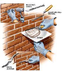 Cleaning and Repointing Hold the chisel at a sharp angle to the joint while striking it with a hammer and knock out the crumbling joints to a depth of at least ½.