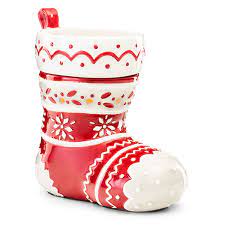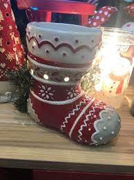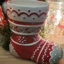 Begin your holiday season with this Christmas stocking shaped warmer cheerfully painted in festive red and white of a classical Christmas design. Sell now - Have one to sell. Description A cute Christmas stocking placed with care is guaranteed to bring loads of extra cheer this season.