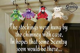 Hung by the chimney warmer. The Hung by the Chimney Scentsy Warmer A cute Christmas stocking placed with care is guaranteed to bring loads of extra cheer this season. Hung by the Chimney Warmer. Mouse over to Zoom-Click to enlarge.