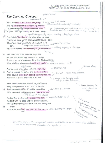The annotation prompts are a supportive tool intended to encourage further poetry analysis and interpretation. Boys as young as four were trained to climb chimneys and begin work. The chimney sweeps were not given any type of respiratory equipment or protective clothing.