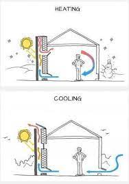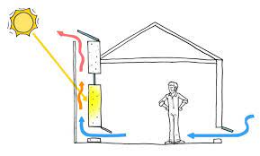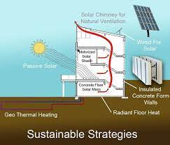 A passive solar heating and cooling system is the process of using existing building systems to regulate the internal temperature by using solar energy without using air conditioner. Solar chimneys or thermal chimneys are a form of passive building design. Like a Trombe wall or solar wall solar chimneys are a way to achieve energy efficient building design.
